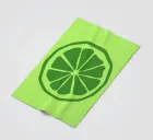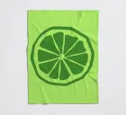 A stylized green lime slice with bold, clean lines stands out against a lighter green background. The simple design emphasizes the segments and rind of the lime.