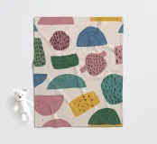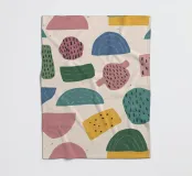 A gentle and pleasing pattern of abstract, organic shapes in pastel colors like pink, blue, and yellow, creating a soft, modern, and cheerful design.