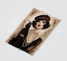 Elegant Flapper Girl in Art Deco Luxury This image showcases a stunning flapper girl posing elegantly amidst opulent metallic accents, lavish furnishings, and ornate decor, blending futuristic and Art Deco styles with organic curves and dreamy surrealism.