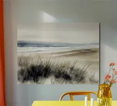 Layered in rich teal and pale aqua, this abstract watercolor flows like shifting tides against a quiet shoreline. A blend of smooth gradients and soft edges captures the quiet motion of the sea—calm, raw, and endlessly evolving.