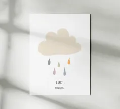 Sad little cloud with rain shower. Hand-painted sweet motif.