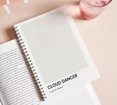 Ein ruhiger, moderner Farbdruck mit Cloud Dancer, einem weichen, neutralen Off-White, das von zeitgenössischen Farbsystemen inspiriert ist.