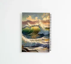 This oil painting captures the power and beauty of offshore waves. Towering swells rise and surge, rendered in bold strokes of deep blue, sea green, and foamy white, creating striking contrasts. Sunlight reflects off the ocean’s surface, shimmering and ever-shifting. The painting evokes a sense of freedom, the majesty of nature, and the boundless energy of the sea.