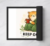 Diese handgezeichnete Illustration zeigt eine ruhige, entschlossene Katze, die Sie daran erinnert, immer weiter voranzuschreiten. Mit einer warmen Farbpalette und sanften Linien zelebriert dieses Kunstwerk Ausdauer, Geduld und innere Stärke. Ein beruhigendes Werk für Arbeitsräume, Ateliers oder jeden Raum, der stille Motivation benötigt.