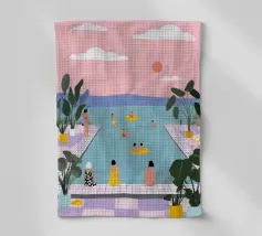 Das Sonnenlicht dringt durch tropische Blätter, während sie friedlich in einem Pool schwimmt und sich völlig entspannt. Die Welt um sie herum verschwindet in sanften Farben und ruhigen Formen - Strandbälle, Sandalen und die Zeit selbst bleiben zurück. Dieses Werk ist ein visuelles Aufatmen und eine Erinnerung daran, innezuhalten, zu atmen und die Ruhe zu genießen.