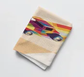 Get an illustration of a colorful classic car with a modern geometric style.