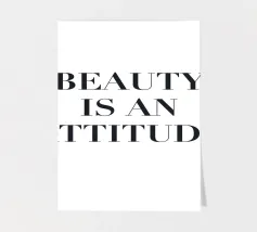 Dieses klare und inspirierende Design mit der Botschaft "Beauty is an attitude" ist perfekt für alle, die ihre Schönheit und ihr Selbstbewusstsein als innere Einstellung sehen. Die minimalistische Typografie in schlichtem Schwarz auf weißem Hintergrund macht dieses Design zu einem zeitlosen Statement, das in jedem Raum oder auf jedem Produkt eine kraftvolle, positive Wirkung entfaltet. Ideal für Wandbilder, Kissen, Tassen oder Handyhüllen – ein stilvolles und motivierendes Design, das Eleganz und Inspiration vereint.