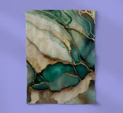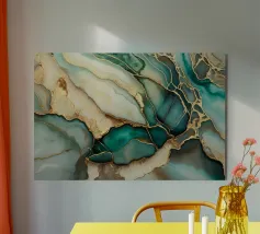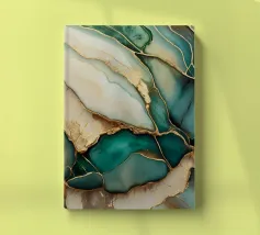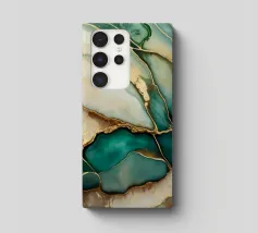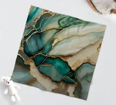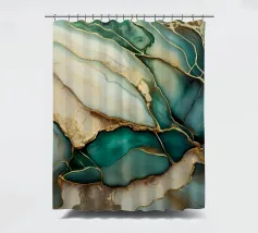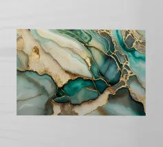 Dieses smaragdgrüne, blaugrüne und goldene Marmordesign ist ein fesselndes Meisterwerk mit einem Hauch von böhmischem Luxus. Seine Mischung aus organischer Textur und schönen Farben macht es sofort verführerisch und ist eine Ode an die Schönheit natürlicher Edelsteine. Ein Wirbel aus Quarzit taucht mit der Erhabenheit der Vergangenheit auf, der Effekt ist dramatisch und zeitlos und schafft einen Look, der jedem Raum eine raffinierte Note verleiht.