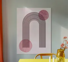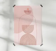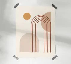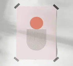 Dieser abstrakte Liniendruck mit eleganten Bogen- und Kreismotiven in einem warmen, satten Terrakotta-Farbton wertet Ihren Raum auf. Dieses minimalistische Design enthält subtile, aber faszinierende Muster innerhalb der geometrischen Formen: ein Abschnitt zeigt zarte Polka-Dots, während ein anderer organische, fließende Konturlinien zeigt, die Tiefe und visuelles Interesse hinzufügen. Dieses Stück verkörpert eine raffinierte Mischung aus moderner und erdiger Ästhetik. Mit einer beeindruckenden Auflösung von 7000x5000 Pixeln und einer Auflösung von 300 dpi garantiert dieses hochwertige Digitalkunstwerk makellose Details und lebendige Farben und ist somit ein ideales