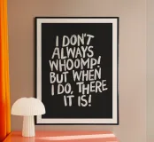 Bringen Sie einen spielerischen Twist in Ihre Einrichtung mit diesem frechen handgemalten Druck mit dem Motiv "I Don't Always Whoomp But When I Do There It Is" in fetten weißen, gekritzelten Buchstaben auf einem tiefschwarzen Hintergrund. Dieses auffällige Kunstwerk ist perfekt für Musikliebhaber, Popkultur-Fans oder alle, die ein witziges Statement lieben, und verleiht jedem Raum Humor und Persönlichkeit. Es eignet sich ideal als Geschenk für Geburtstage, Weihnachten oder einfach nur so. Es sorgt für Gesprächsstoff und hinterlässt einen unvergesslichen Eindruck in jedem modernen Zuhause oder Büro.