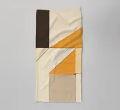 Geometrische Formen in Beige-, Creme- und Orangetönen werden von kühnen Linien durchschnitten und bilden eine abstrakte und moderne Komposition. Die Verwendung von Farbblöcken und Winkeln vermittelt ein Gefühl von Tiefe und Struktur.