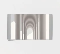 Die gedämpften Rosa-, Blau- und Cremetöne verstärken den ätherischen Effekt und verwandeln feste Formen in einen visuellen Trick aus Licht und Geometrie. Es ist ein Raum, der sich sowohl real als auch imaginär anfühlt - ruhig, endlos und leise surreal.