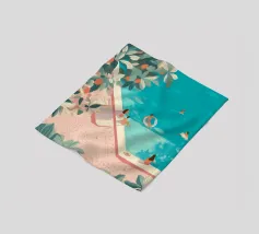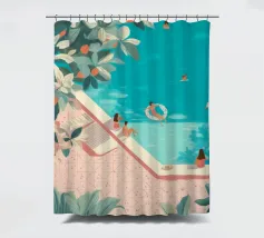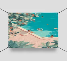Unter fruchttragenden Ästen und einem Himmel von unendlichem Blau geht der Sommer sanft in Lachen und Sonnenlicht über. Das Wasser leuchtet wie eine Erinnerung, weich und schimmernd, während leise Gespräche und treibende Körper den Rhythmus eines ruhigen Nachmittags bestimmen. Alles hier fühlt sich sonnengetränkt und schwebend an, als könnte sich der Tag ewig hinziehen.