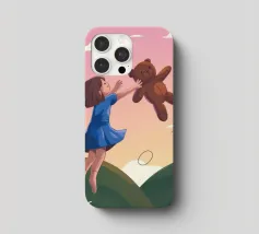 Dieses Kunstwerk zeigt eine mürrisch aussehende Wolke mit einer Gedankenblase, die einen Vogel und einen Bären enthält. Die humorvolle und fantasievolle Szene ist vor einem sanften blauen Hintergrund zu sehen.