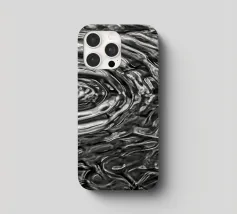 Wassertropfen verteilen sich auf einer glatten, reflektierenden Oberfläche und fangen das Licht in einer abstrakten Formation ein. Dieser minimalistische Hintergrund bietet eine heitere und beruhigende Atmosphäre für mobile Geräte.