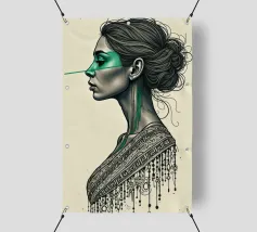 Ein visionäres Porträt von Ada Lovelace – der ersten Programmiererin der Geschichte, neu interpretiert im futuristischen Cyberpunk-Stil. Tattoos, Tech-Gadgets und der binäre Code „0/1“ verbinden historische Genialität mit moderner Ästhetik. Für alle Fans von Female Empowerment, IT-Kultur und Digital Art. Perfekt als Poster für Arbeitszimmer, Galerien oder moderne Lernräume.