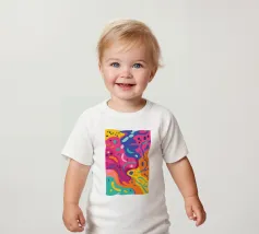 Klassisches, bequemes Baby T-Shirt mit lockerer Passform und praktischen Druckknöpfen.