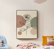 Rose Line Art mit abstrakten Formen Acryl-Glas
