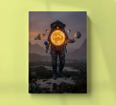 Dieses surreale kosmische Kunstwerk zeigt einen Astronauten, der in den Tiefen des Weltraums steht, umgeben von leuchtenden Planeten, Sternen und Galaxien. Der Astronaut hält in jeder Hand einen Planeten, was ein Gefühl von Geheimnis, Erforschung und unendlichen Möglichkeiten vermittelt. Der Helm spiegelt ferne Welten wider und verleiht ihm eine verträumte Sci-Fi-Atmosphäre sowie eine symbolische Bedeutung für Neugier, Fantasie und das Universum. Dieses Kunstwerk ist ideal für Liebhaber von Weltraumkunst, futuristischen Themen und modernem Surrealismus und eignet sich hervorragend für Schlafzimmer, Spielkonsolen, Studios und kreative Umgebungen.