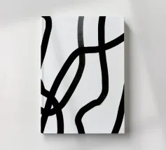 Ein kraftvolles Geflecht aus schwarzen Linien, die sich biegen und kreuzen – wie widerstreitende Gedankenströme auf neutralem Grund. Die Komposition erinnert an gestische Abstraktion, mit Anklängen an Franz Kline und japanische Tuschekunst. Trotz der Strenge der Farbpalette entfaltet sich eine expressive Dynamik. Ein Werk, das Spannung aus Reduktion schöpft und den Raum mit purer visueller Energie auflädt. Auch auf Textil.