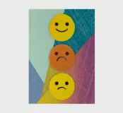 Die einfachen, aber aussagekräftigen Illustrationen zeigen drei Gefühlsausdrücke: glücklich, traurig und enttäuscht.