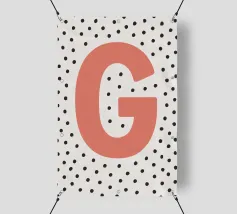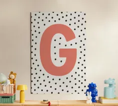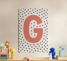 Das verspielte Design mit dem Buchstaben „G“ in kräftigem Rot auf schwarzem Punktmuster ist ein stilvoller Hingucker. Perfekt für Kinderzimmer, moderne Wohnräume oder als Geschenkidee mit persönlicher Note. Die klare Typografie kombiniert mit skandinavisch inspiriertem Muster verleiht jedem Raum einen charmanten Akzent. Ideal zum Kombinieren mit weiteren Buchstaben der Serie.