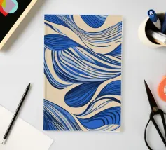 Dieses Design zeigt dynamische, wirbelnde Muster in verschiedenen Blautönen, die eine atemberaubende abstrakte Darstellung erzeugen, die sich perfekt als Desktop-Hintergrund eignet.