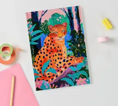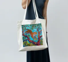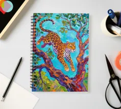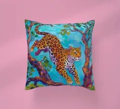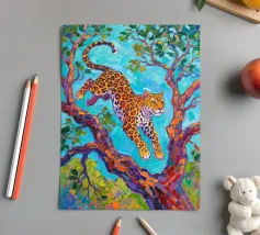 Leopard springt zwischen Baum mit Fauvismus Malerei Kunststil