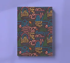 Dieses Design präsentiert eine abstrakte Komposition aus fließenden Linien und Formen in kräftigen Farbtönen. Die elemente sind harmonische angeordnet und verleihen dem Muster eine dynamische und verspielte Ausstrahlung.