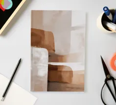 Moderne abstrakte Kunst mit geometrischen und organischen Formen kombiniert mit Linien und Texturen in einem trendigen Retro-Stil mit ockergelben, braunen und grauen Tönen. Diese Serie passt gut zu verschiedenen Wohnstilen wie Design, Retro, Minimalismus, Industrie, eklektisches Interieur. Geeignet für Arbeitszimmer, Wartezimmer, Flur, Wohnzimmer oder Schlafzimmer.