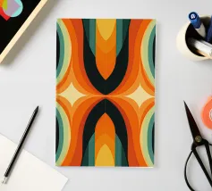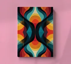Dieses Kunstwerk ist eine faszinierende optische Illusion und eine Hommage an die Psychedelische Kunst und Op-Art der späten 1960er und frühen 70er Jahre. Geschwungene, fließende Formen in flammendem Rot und warmem Orange treffen auf kühle Töne von Türkis und Blaugrün, was eine dynamische, feurige und zugleich aquatische Spannung erzeugt. Die vertikale Symmetrie und die geschichteten, tropfenförmigen Motive erinnern an ikonische Stoff- und Tapetendesigns dieser Ära. Das Muster erzeugt einen unaufhörlichen visuellen Sog und scheint fast zu atmen. Ein energiegeladener, hypnotischer Blickfang.