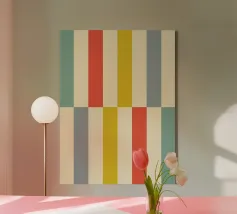 Ein zeitloses, sommerliches Retro-Karomuster mit gedämpften Blau-, Rot-, Gelb- und Petroltönen auf einem weichen elfenbeinfarbenen Hintergrund, der mit einer subtilen Struktur versehen ist, die ein warmes, klassisches Gefühl vermittelt. Dieses vielseitige Design ist mühelos stilvoll und eignet sich perfekt für Wohndekoration, Accessoires, Schreibwaren und mehr.