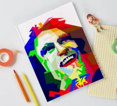 Ein lebhaftes und geometrisches Porträt von Sinead O'Connor im WPAP-Stil mit kühnen, kantigen Formen und einer auffälligen Reihe heller, kontrastreicher Farben. Das Kunstwerk fängt ihre ikonischen Merkmale, wie ihren rasierten Kopf, ihre stechenden Augen und ihren starken Gesichtsausdruck, mit scharfen, fragmentierten Farbblöcken ein. Die Komposition betont Tiefe und Emotionen und behält gleichzeitig die unverwechselbare kubistische Pop-Art-Ästhetik von WPAP bei, wodurch eine visuell dynamische und moderne Hommage an die legendäre Sängerin entsteht.