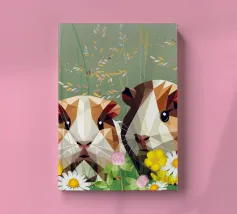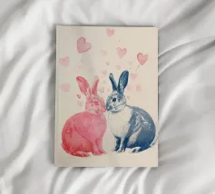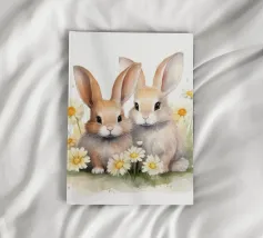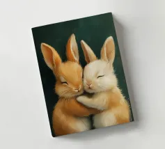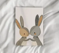 Zwei Hasen in sanften, geometrischen Formen und beruhigenden Erdtönen. Ihre Darstellung in verschiedenen Brauntönen bringt eine verspielte und dennoch elegante Note. Ein perfektes Kunstwerk, das Frühlingsstimmung und die Freude der Saison verkörpert. Geometrische Darstellung von zwei Hasen Harmonische Erdtöne in Beige, Braun und Weiß Ideal für Frühlingsthemen und Osterdekoration Modernes Design mit einem minimalistischen Touch Perfekt für Kunstliebhaber, die kreative Tierdarstellungen schätzen