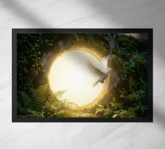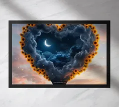 Erleben Sie die Magie des Reisens und des Nachthimmels mit diesem stimmungsvollen Kunstwerk, das eine Hand zeigt, die sanft ein Flugzeugfenster mit Blick auf leuchtende Wüstendünen berührt. Eine Mondsichel leuchtet vor einem tiefblauen Himmel voller Sterne und schafft eine heitere Mischung aus Fernweh und Staunen. Der warme, goldene Sand steht in schönem Kontrast zu den kühlen Nachttönen und fängt das Gefühl von Einsamkeit, Reflexion und Träumen über der Welt ein. Perfekt für Reiseliebhaber, Minimalisten und Fans von filmischen, verträumten Fensterbildern.
