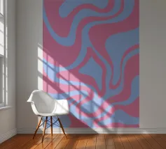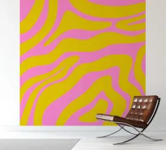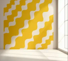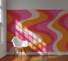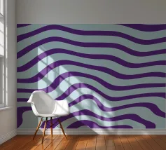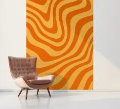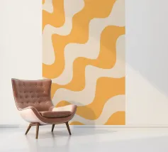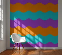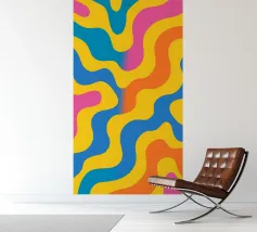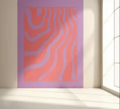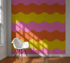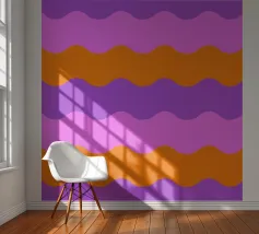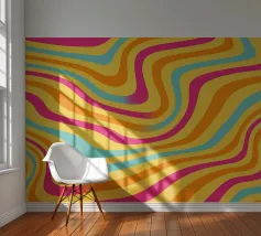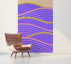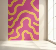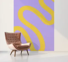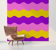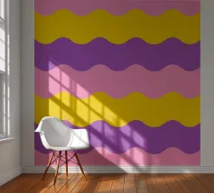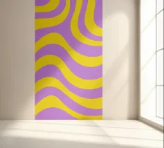 Retro-Muster, abstrakte Wellen, grooviges Design, gelb und lavendel, psychedelische Kunst, farbenfroher Hintergrund, Mitte des Jahrhunderts modern, flippige Tapete, lebendiges Dekor, trippiges Design, 70er Jahre Ästhetik, kühne abstrakte Formen