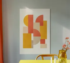 Modernes Bauhaus-inspiriertes Poster in kräftigen Farben und klaren Formen. Verbindet strenge Geometrie mit weichen Rundungen – ein zeitloses Designstatement für Wohn- und Arbeitsräume.