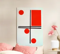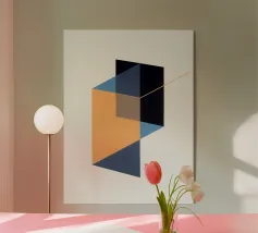 Inspired by the Bauhaus movement, this piece celebrates harmony between structure and spontaneity. Clean lines, balanced asymmetry, and a bold yet restrained color palette come together to create a modernist aesthetic that is both retro and timeless.