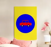 Bring a touch of nostalgia to your décor with this delightfully vintage "Auto" design. Inspired by wooden toys and minimalist illustrations from the 1960s and 1970s, this little red car evokes childhood memories and imaginary journeys. With its simple geometric shapes and contrasting primary colours — bright red on a deep blue circle — this piece adds a playful, graphic touch to your living space.
