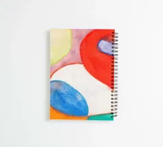 Abstract watercolor with organic shapes in red, blue, orange, emerald green and some pastel shades