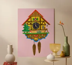 Produktbeschreibung: Dieses kunstvolle Design zeigt eine detailreiche Illustration einer klassischen Kuckucksuhr im Vintage-Stil. Mit ihren filigranen Schnitzereien, traditionellen Elementen wie den hängenden Gewichten und dem Dach aus geschnitzten Blättern verkörpert das Motiv zeitlose Eleganz und einen Hauch von Nostalgie. Die Kombination aus präzisen Linien und schattierten Details erzeugt einen edlen, handgezeichneten Look, der perfekt für Liebhaber von Retro- und klassischen Designs geeignet ist. Der dezente, beigefarbene Hintergrund unterstreicht die schwarz gehaltene Illustration.