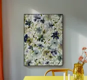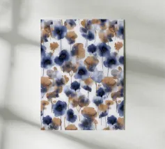 A fluid and expressive floral composition blending sage greens, deep indigos, and muted taupes. Loose watercolor brushstrokes suggest an overgrown botanical field viewed through a soft, dreamlike veil. Modern yet organic, this pattern evokes a sense of quiet movement and natural rhythm.
