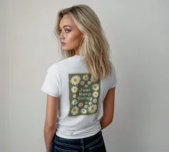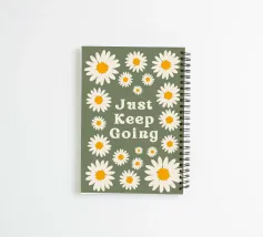 Uplifting and retro motivational art print featuring the phrase "Just Keep Going" surrounded by charming white and yellow daisies. The dark sage green background and distressed texture give it a cool, vintage 70s aesthetic. Perfect for a dorm room, home office, or bedroom. Retro Flower Art, Just Keep Going, 70s Aesthetic Poster, Daisy Wall Art, Groovy Motivational Print, Sage Green Deco, Vintage Hippie Vibe, Inspirational Quote