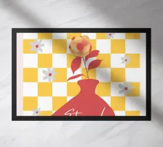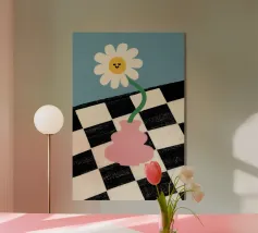 Express vivacity with our modern art poster "Fleurs Vivifiantes" from the FLOWER POWER series. Flowerpot designs and tile patterns intertwine harmoniously and vibrantly, creating a colourful artistic focal point that will catch the eye of your guests.