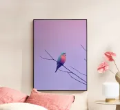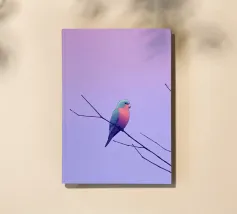 A minimalist composition capturing a moment of stillness and gentle solitude. Soft pastel tones and open space surround a lone bird at rest, evoking calm, freedom, and quiet reflection. This artwork celebrates pause and presence—ideal for interiors that value lightness, serenity, and emotional breathing room.
