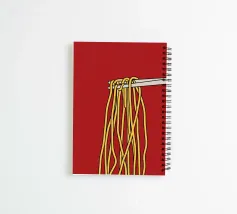 Bold and playful, this pop art graphic illustration features bright yellow spaghetti lifted by chopsticks against a vibrant red background – a quirky celebration of fun, food, and color.