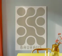 Diese abstrakte Malerei kombiniert sanfte Linien und Kurven in einem skandinavischen Design, das durch einen beigen Hintergrund und weiße Linien besticht. Die geometrischen Formen und die symmetrische Anordnung erzeugen ein modernes, helles Ambiente, das perfekt im Boho-Style harmoniert. Ideal für Liebhaber minimalistischer Kunst und zeitgemäßer Ästhetik.