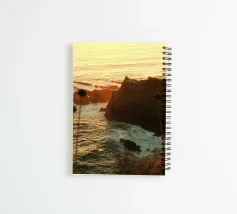 The water reflects the colors like a mirror, its surface glowing with soft, rippling light. Gentle waves roll toward the shore, catching the last rays of the day. The air feels still and peaceful, filled with the calming rhythm of the sea. It’s a quiet, breathtaking moment where sky and ocean blend into one warm, glowing scene."