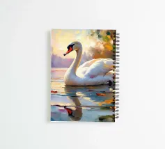 This oil painting does not merely depict a swan, but rather captures a sense of elegance and purity. The swan glides gracefully across the still lake, like a princess from a fairytale. The golden hues of dawn bathe the water's surface, creating a romantic and poetic atmosphere. The painting evokes a sense of serenity, softness, and a dreamlike feeling when beholding the beauty of nature. Its snowy white feathers contrast beautifully with the blue of the lake, composing a harmonious symphony of color and emotion.