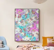 A colorful image with Unicorns